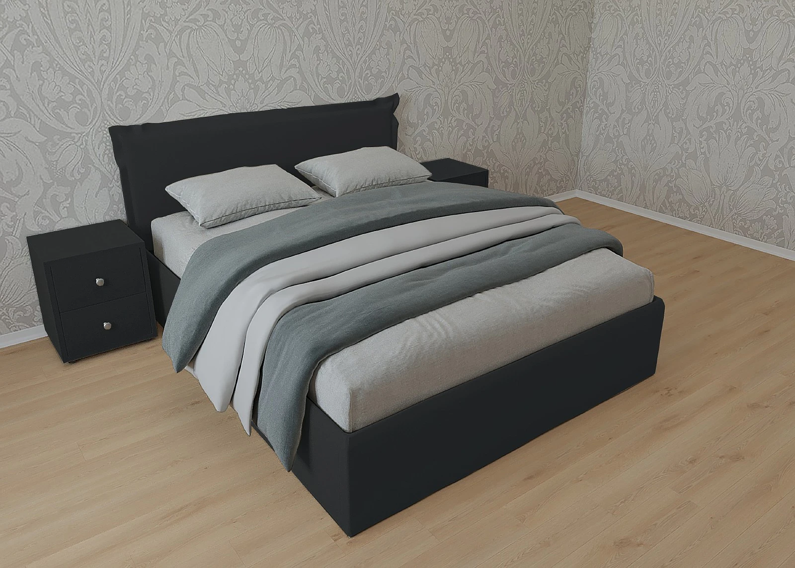В наличии Кровать Дели с Матрасом, 180×200, Настил ДСП, Велюр Галакси лайт 15-черный, Ножки Без ножек.