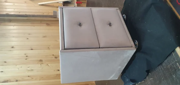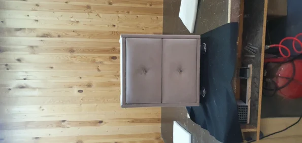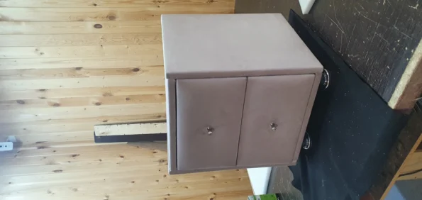 Прикроватная тумба 2 ящика, Велюр Бэлла 9-светло-бежевый, 400х400х500 Ножки хром. Небольшие потертости. Стояла на выставке в магазине. Без стекла